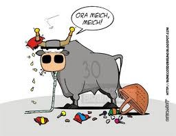A criatura tem o desplante de proclamar que os forcados são todos covardes e pessoas de maus instintos. Claro que isto é uma afirmação totalmente absurda e delirante. Num dos seus blogs , ela publica um texto de outrem em que há uma ridícula tentativa de manipulação das opiniões, dizendo que os forcados “atacam” o toiro. Ora, tudo o que eles fazem é agarrá-lo e imobilizá-lo. Isso dificilmente pode ser considerado um “ataque”. Isso seria se o agarrassem e o violassem, por exemplo. Mas disso nunca ouvi falar, só de histórias de amor entre pastores e ovelhas, lá pelas serranias continentais. Ora aí está um belo tema para ocupar a criatura, a defesa das ovelhas ultrajadas. Quanto aos forcados, imagino que seja preciso uma enorme dose de coragem quando o forcado da cara chama o toiro e vê aquela formidável massa, com os seus cerca de 500 kg de peso em média, de cornos em riste, a galopar na sua direção, restando ao forcado minimizar o impacto, através de uma técnica apurada e esperar o apoio dos companheiros. Imagino que aquela viagem agarrado à cabeça do toiro, que dura alguns segundos e acaba frequentemente mal, deve parecer uma eternidade e o forcado deve sentir-se a pessoa mais solitária do mundo nesses momentos…Um pouco como os marinheiros solitários se sentem à noite no mar alto, com mau tempo. Se os forcados são os maiores covardes, então com certeza será muito fácil para qualquer anti-taurino demonstrar essa afirmação dispondo-se a pegar um toiro de 500 kg, o que seria com certeza uma brincadeira infantil, visto o animal estar “exangue e moribundo”. Ah como eu gostava que a própria criatura se voluntariasse para provar as suas afirmações…Nem que fosse no México, eu ia lá de propósito para ajudar a procurar os dentes dela na arena.